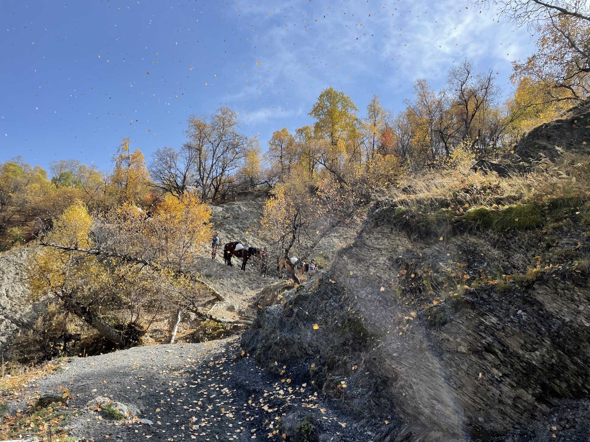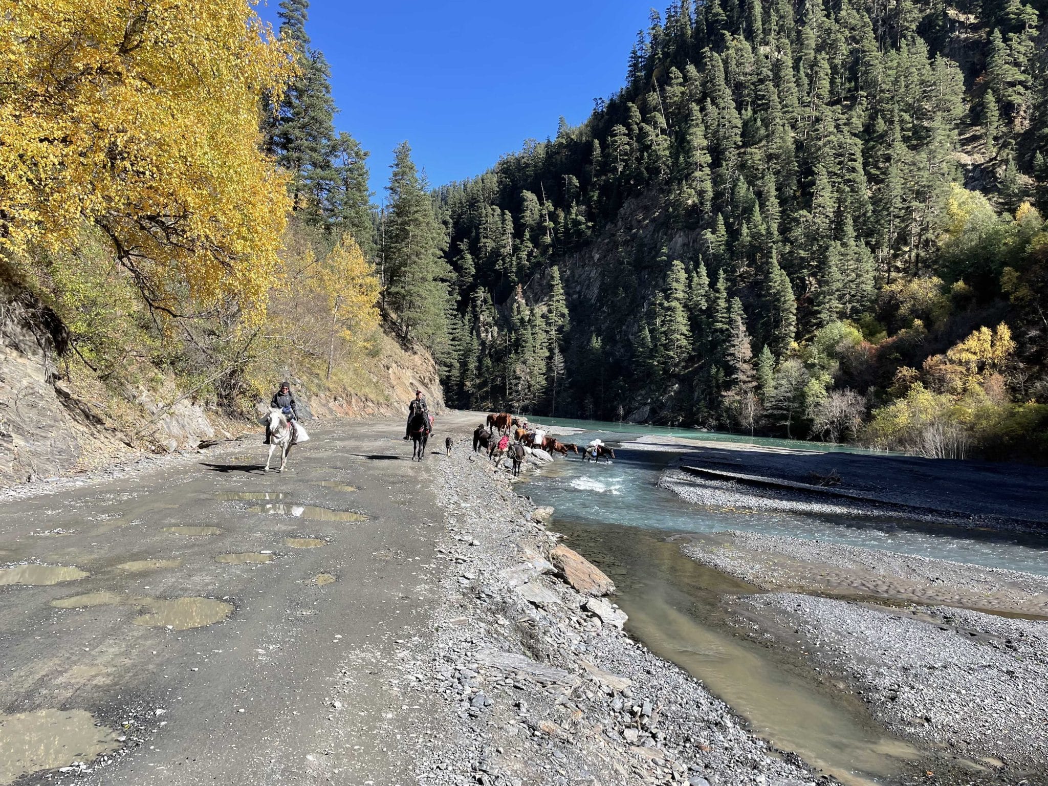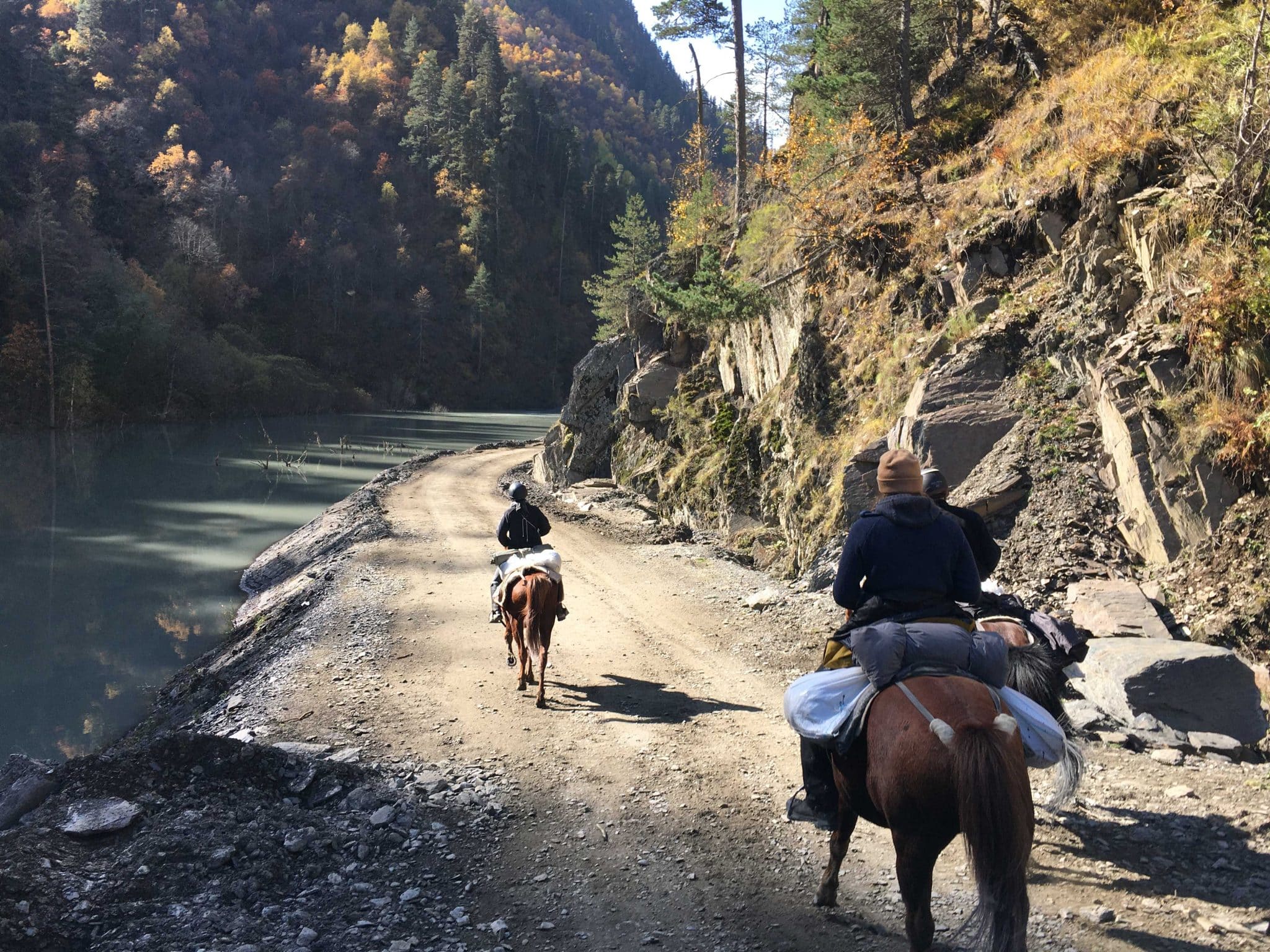 We set out from Gogrulta with the packhorses, riding through Iliurta and along the scenic Gometsari Valley.