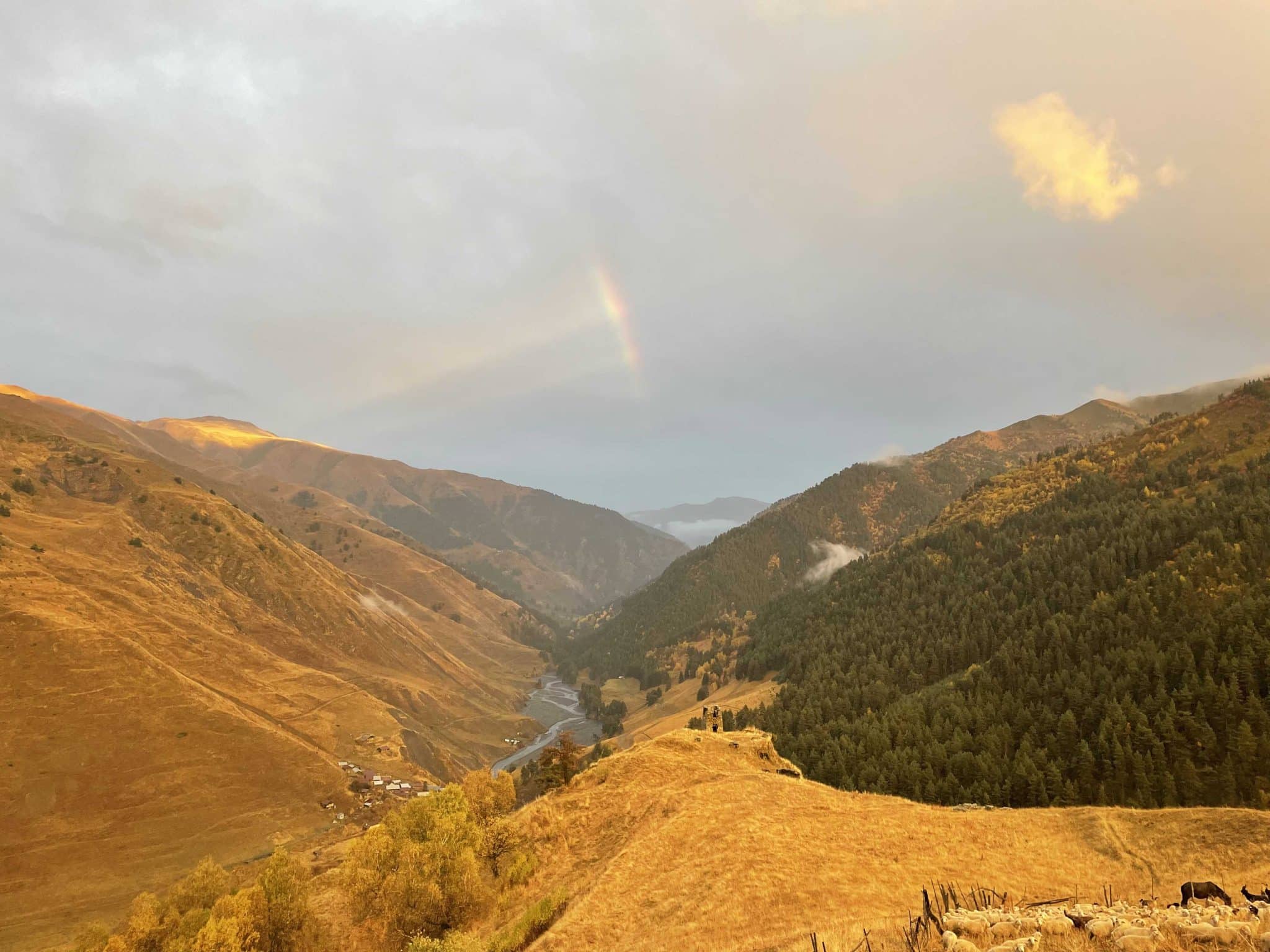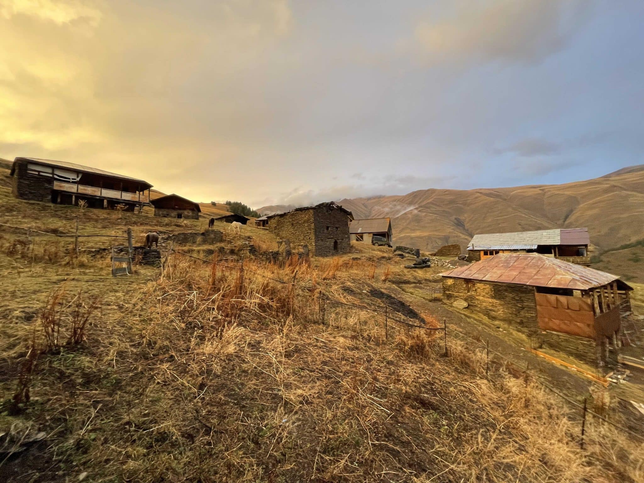 As days shorten and temperatures drop, we ride into the heart of Tusheti. Snow is possible this time of year, and nights can be as cold as -6°C. We’ll stay mostly in traditional Tush houses—simple accommodations where heating may be limited to a wood stove, and rooms aren’t insulated. A very warm sleeping bag is essential.