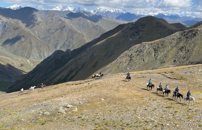After reaching the pass, we ride along the river through wild landscapes. We may need to walk at times.